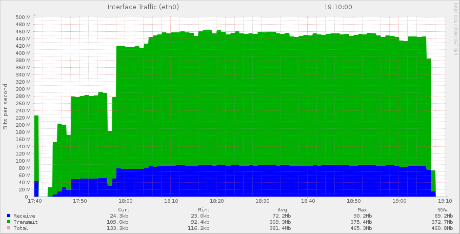 Et surtout on note l‘écrêtage du débit au troisième palier avec un flux de 450 Mbps !